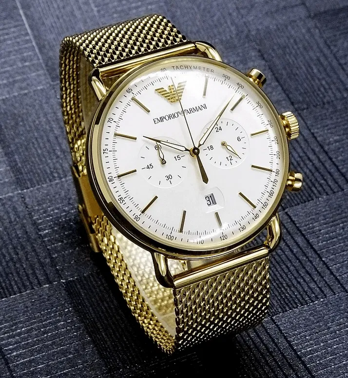 ساعة امبوريو ارماني رجالي أصلية موديل (أفياتور) Aviator AR11315 بلون ابيض و استيك معدن بلون ذهبي