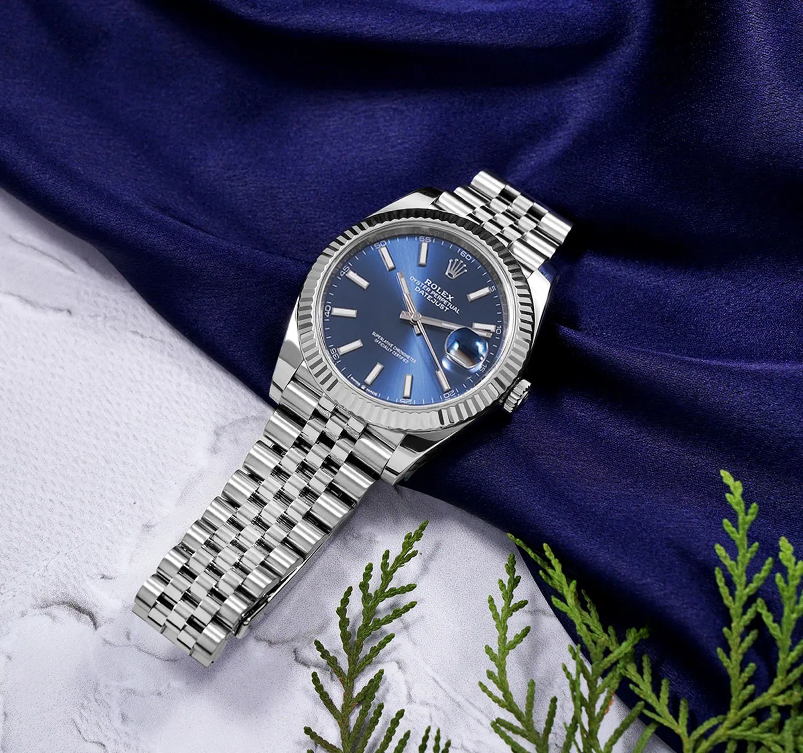 رولكس ديت جست ميرور أوريجنال بلون ازرق واوستيك ستنلس ستيل بلون فضي