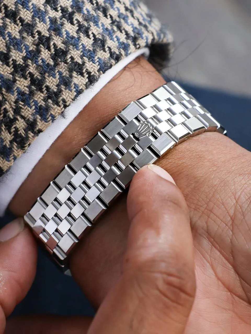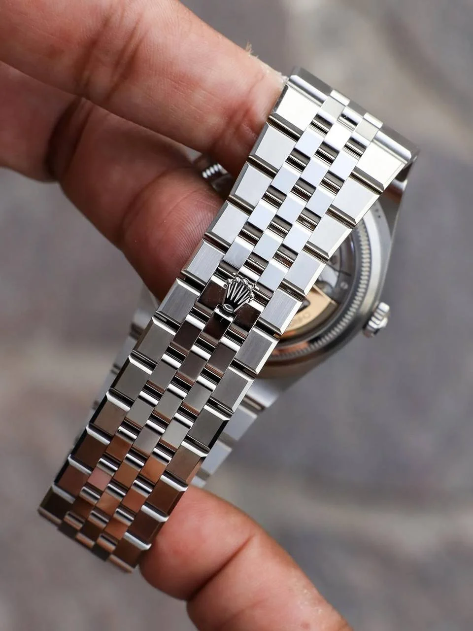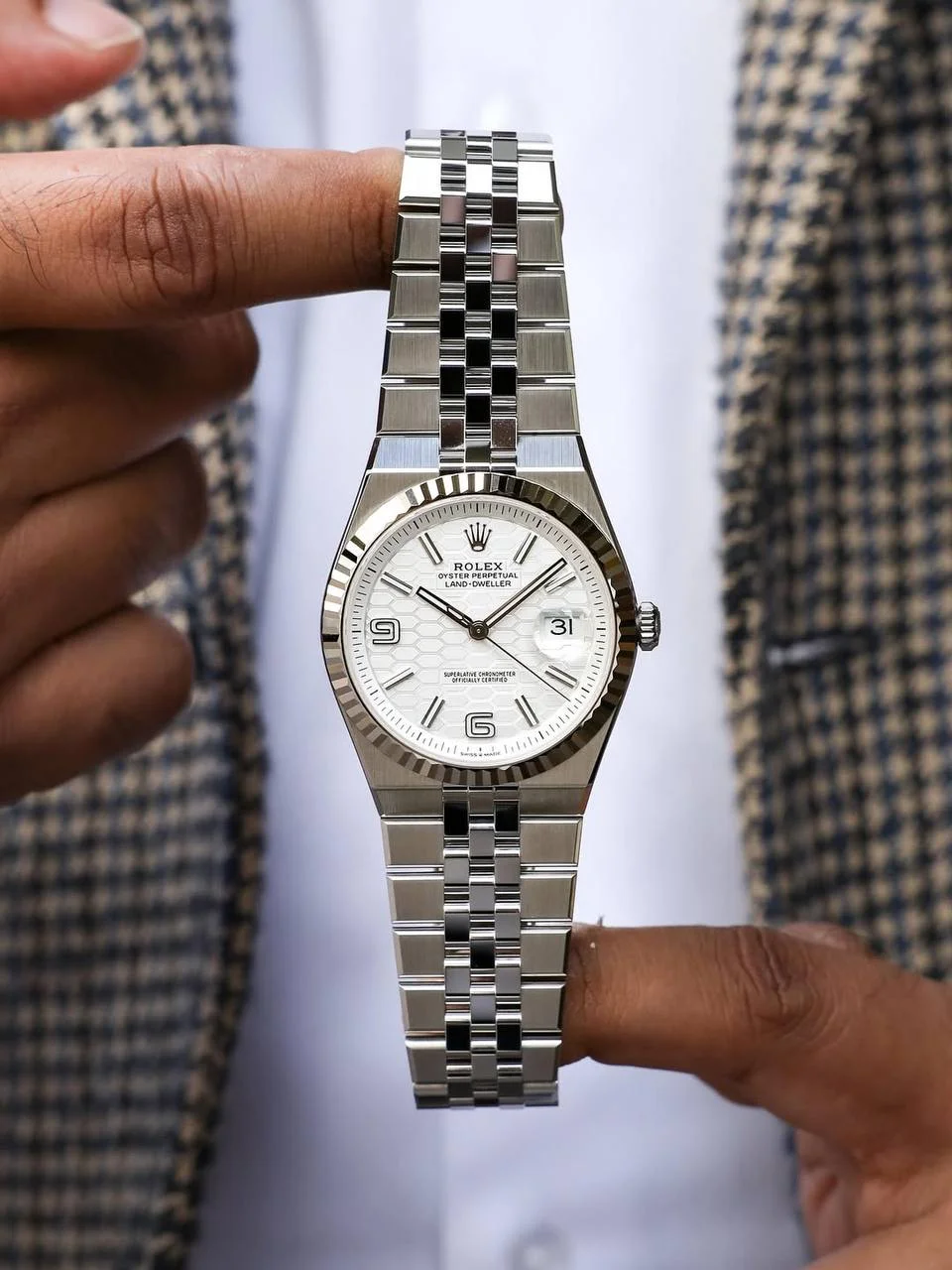 ساعة رولكس لاند دويلر للرجال بلون ابيض واوستيك استنلس ستيل لون فضي
