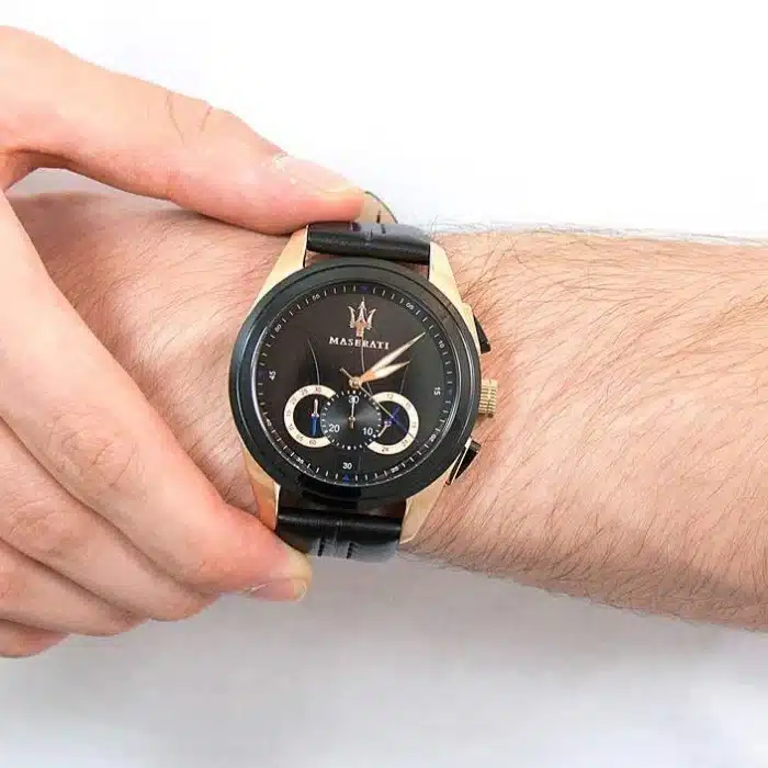 ساعة مازيراتي رجالي أصلية موديل (تراجواردو) R8871612033 Traguardo بلون اسود و استيك جلد طبيعي بلون اسود