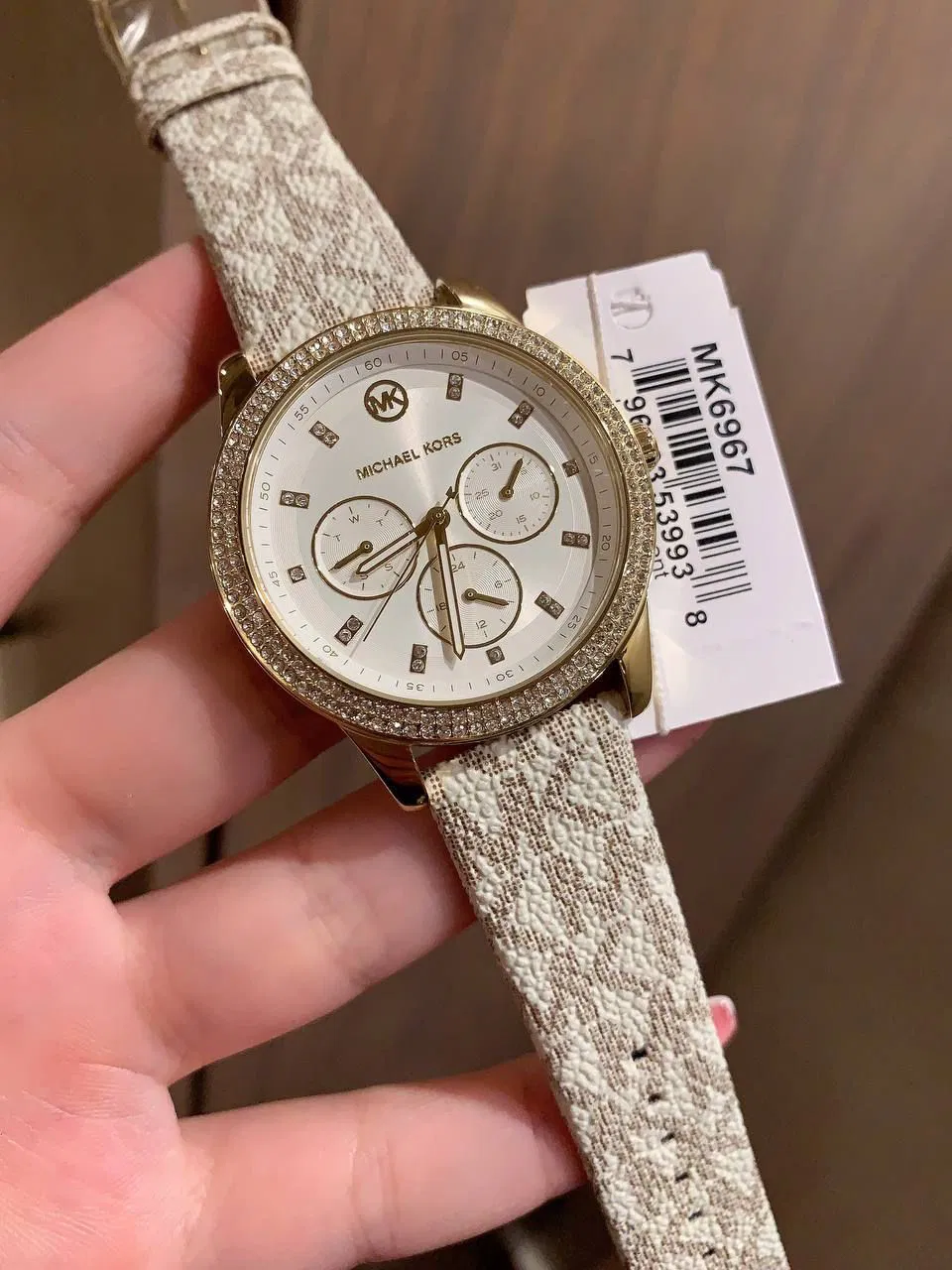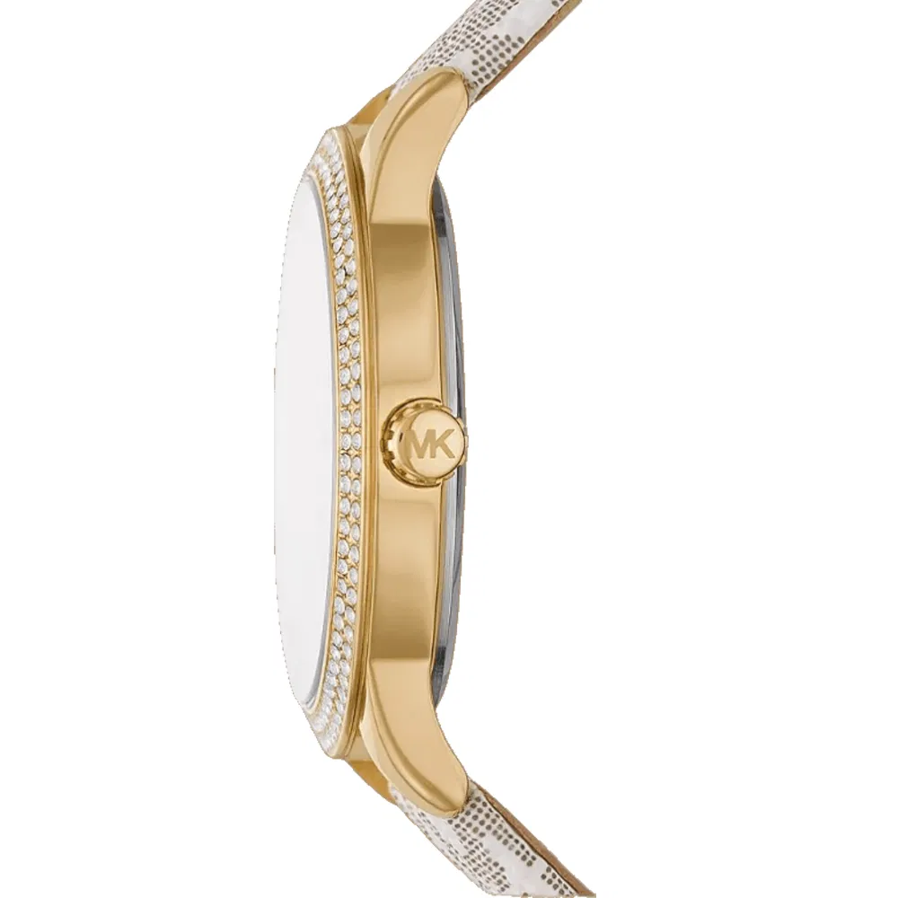 ساعة مايكل كورس Michael Kors نسائي أصلية موديل MK6967 بلون ابيض و استيك كلوريد البولي يوريثين بلون بيج