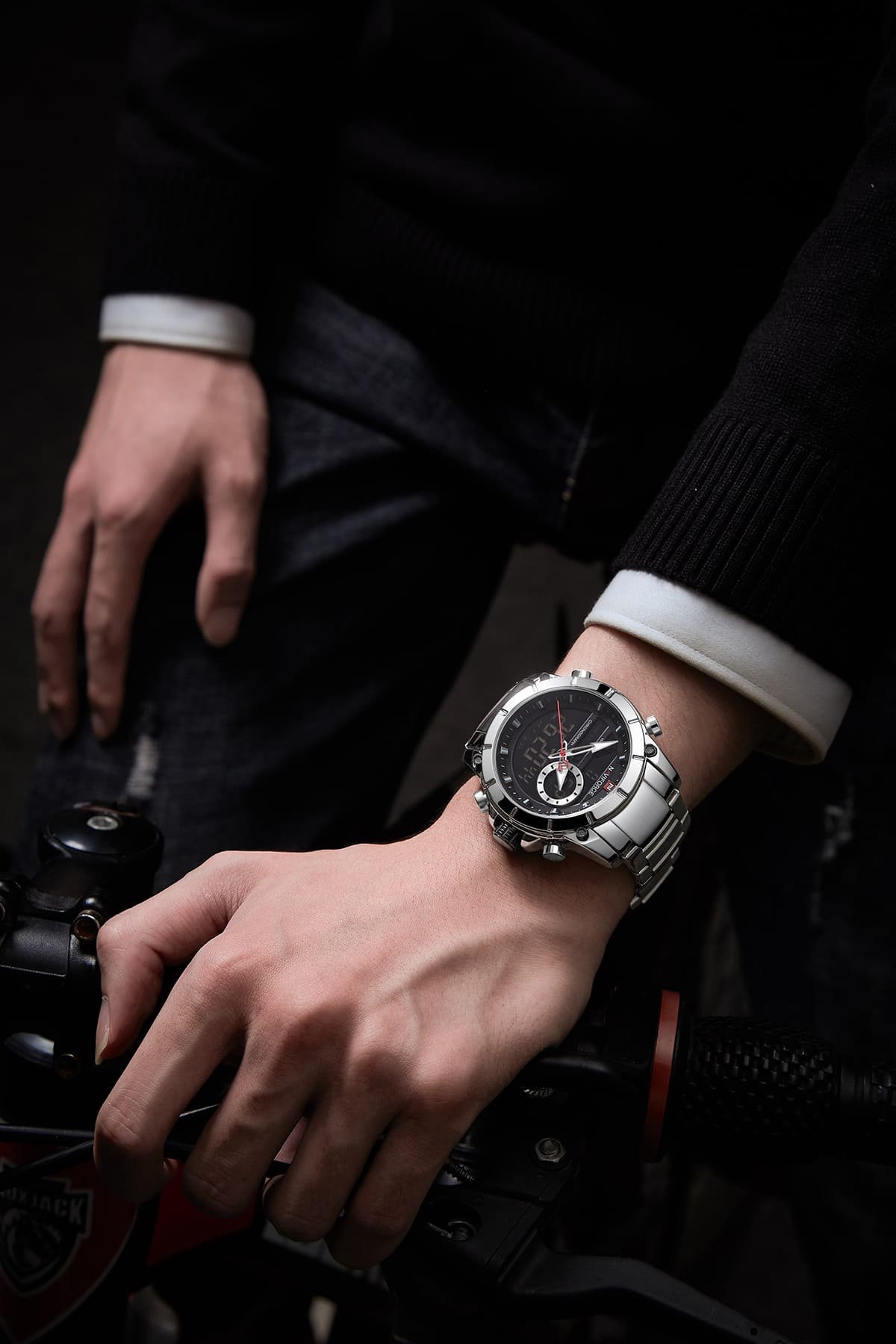 ساعة يد نافي فورس Naviforce NF9163 S B رجالي أصلية موديل ( NF9163 ) نظرية و رقميةبلون مينا اسود و استيك معدن بلون فضي احصل عليها غدا خلال 24 ساعة داخل القاهرة و الجيزة و الاسكندرية