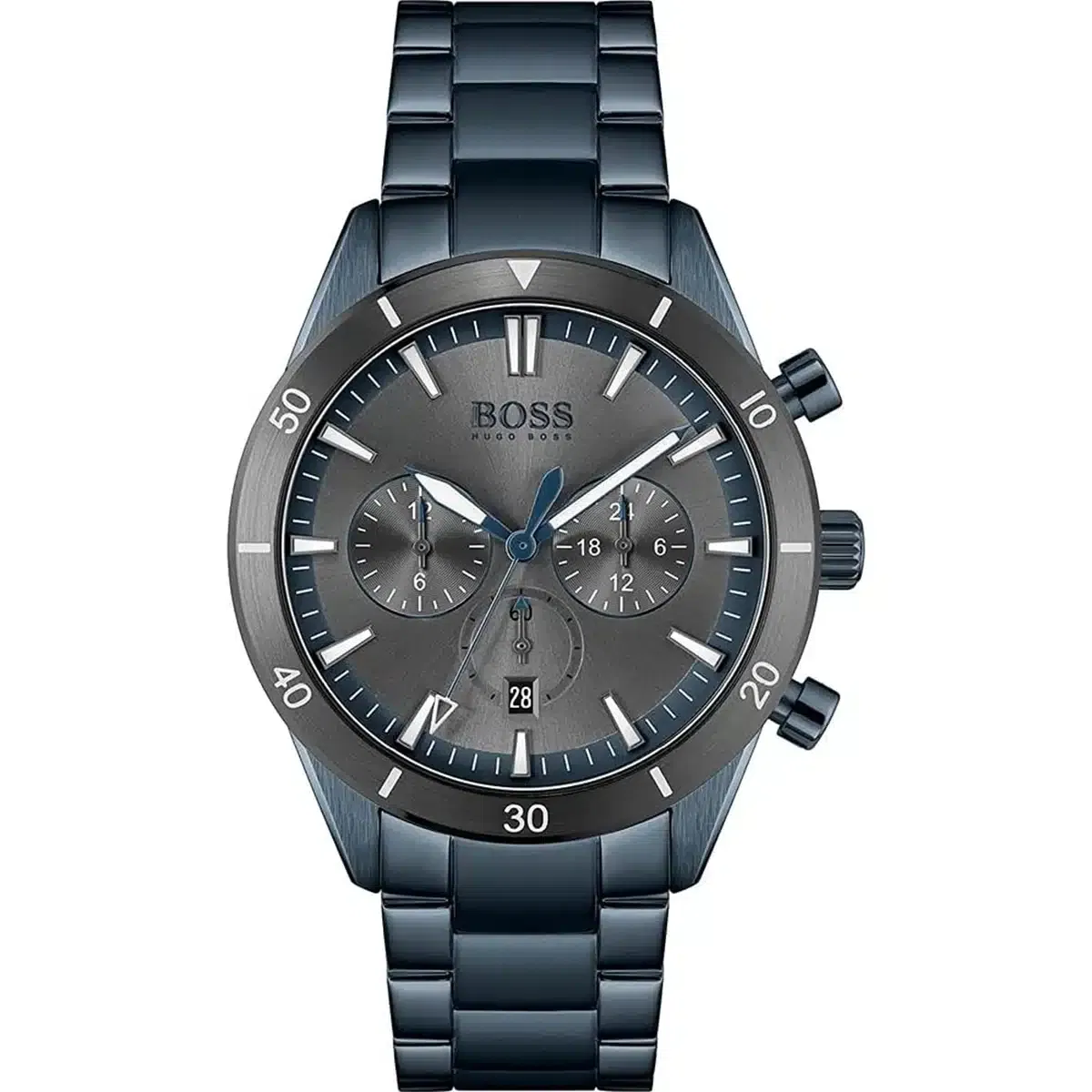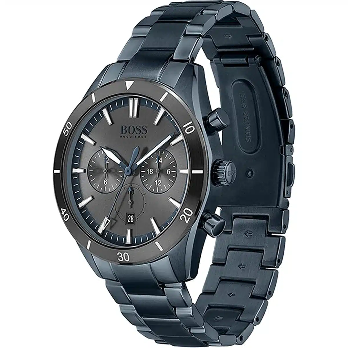 ساعة هوغو بوس للرجال اصلية بلون ازرق واستيك معدن لون كحلي